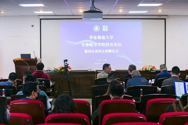 11月24日,av影片 校友论坛暨何红章校友捐赠仪式在闵行校区生科楼534报告厅举行。京道资产管理集团董事长何红章、合伙人张海忠等一行,华东师大党委常委、副校长雷启立,校教育发展基金会副秘书长宛姝,惠天然集团董事长、学院校友联谊会会长程静、生科院部分杰出校友,以及学院全体党政领导班子出席活动。捐赠仪式由学院党委书记党远鸿主持。