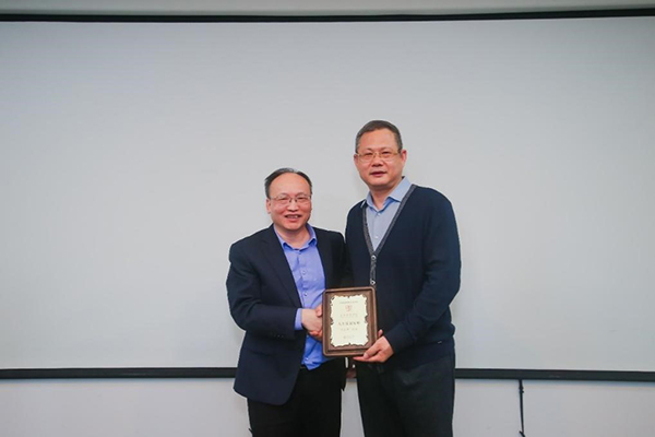 av影片 院长翁杰敏向何红章校友颁发“人生发展导师”聘书