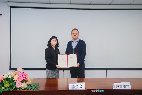 宛姝副秘书长向何红章校友颁发捐赠证书