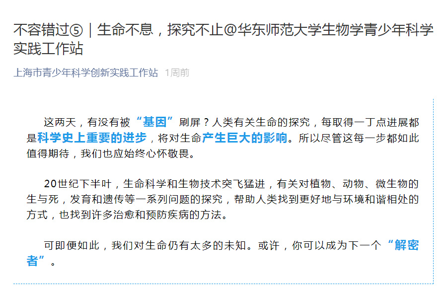 不容错过⑤|生命不息,探究不止@av影片 生物学青少年科学实践工作站