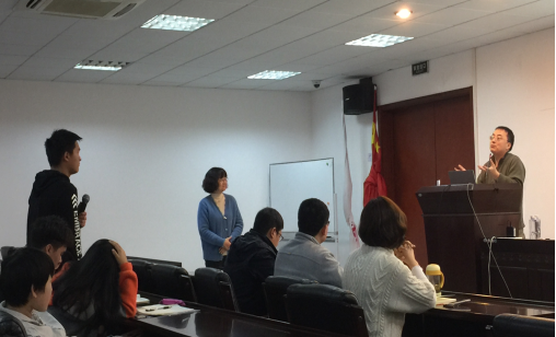 吕东平研究员以“病树前头万木春”这句古诗词,生动地引入了植物免疫这个普遍存在的现象,并系统的介绍了植物的抗病机制,包括天然的免疫系统、物理屏障等。他以模式细菌丁香假单胞菌侵染拟南芥为例,形象直观地让大家对植物天然免疫有初步的了解:细菌通过气孔进入拟南芥,植物感知信号,诱导植物免疫系统启动,植物关闭气孔,细菌会分泌类似于茉莉酸的物质诱导气孔打开,植物进一步启动更强烈的免疫反应。并从植物天然免疫的提出,举例介绍植物天然免疫系统PTI(病原相关分子模式激发的免疫)和ETI(效应蛋白激发的免疫),并做了非常有趣的比喻,细菌和植物间的抗病反应就像是敌我两军的较量,并把细菌鞭毛蛋白的受体FLS2比喻为哨兵,识别细菌鞭毛蛋白(敌人),传递信号给BAK1来启动免疫,让大家对于这个免疫过程非常容易理解,并向大家展示了Flg22-FLS2-BAK1的免疫受体复合物模型以及Flg22诱导ROS爆发的机制。吕东平研究员还向大家讲述了植物免疫的研究进展,让同学们对植物免疫有了更深入的了解与认识。并在最后介绍了他团队近期在研究进展,主要致力于植物天然免疫与年龄;泛素化修饰在植物天然免疫中的调控作用;植物天然免疫与植物发育以及水稻抗稻瘟病基因的克隆四个方面;以清晰的研究思路,一步一步带领大家了解从实验设计到现象观察、思考,最后到模型的建立的过程,使在坐的师生受益匪浅,师生们根据自己感兴趣的内容进行了热烈而充分的讨论交流,本次学术交流活动取得了完满成功。