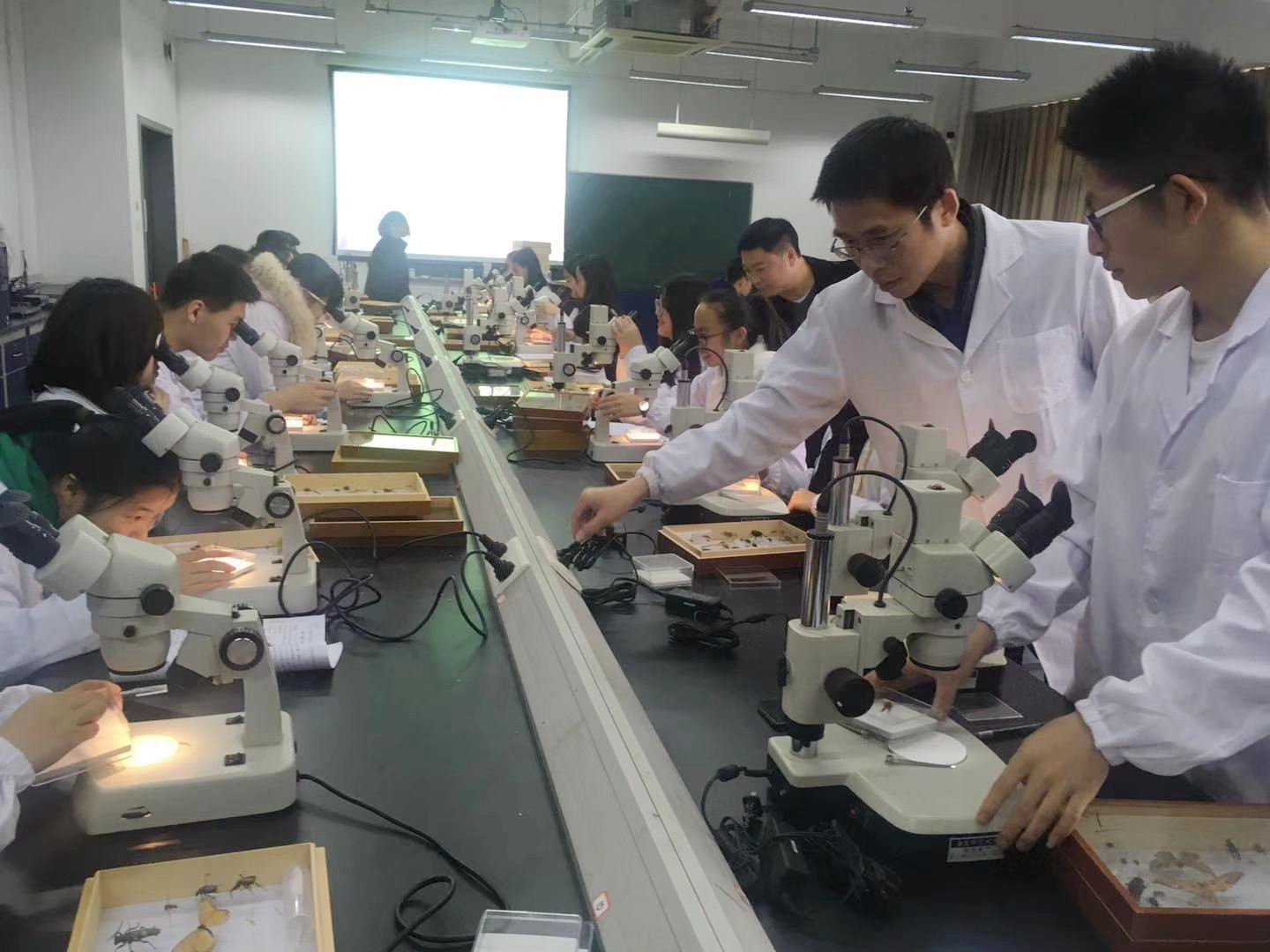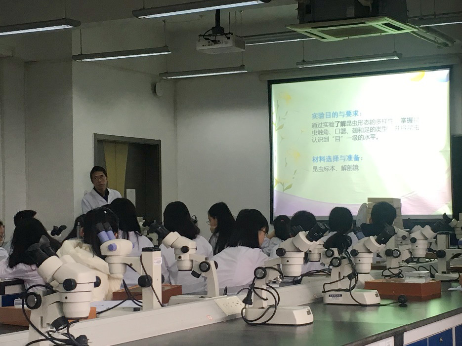 2018年12月20日下午1:00,由何祝清老师主讲的《动物分类—昆虫分类》教学公开课在av影片 闵行校区实验B楼405实验室顺利举行。av影片 副院长江文正教授、赵云龙教授等教学委员会老师以及部分青年教师参加了课堂旁听。