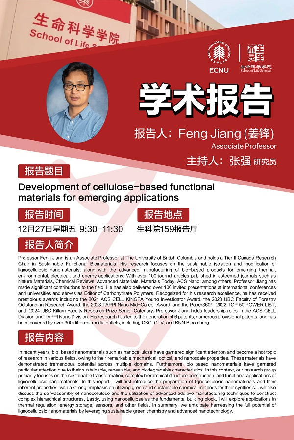 报告题目:Development of cellulose-based functional materials for emerging applications
