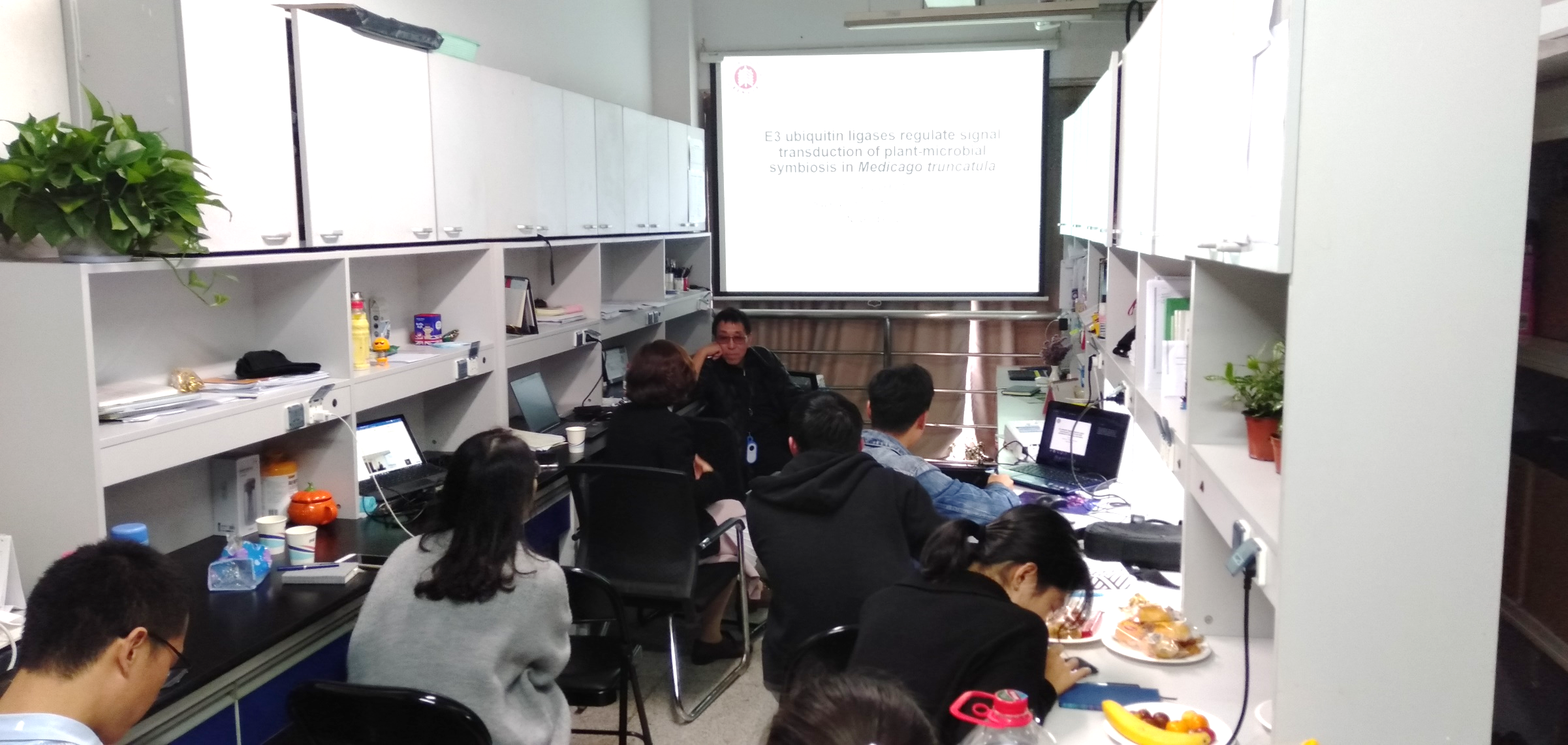 豊田教授此次来访,还与av影片 植物学科从事植物病理、植物-微生物互作等领域教研工作的许玲教授、姜伊娜研究员课题组开展了为期两天半的学术交流和研讨。豊田教授一一听取了相关专业研究生的工作汇报,对他们目前正在开展的研究工作予以了富有建设性的指导,对学生们研究进程中遇到的实验技术瓶颈、论文写作与投稿技巧等问题,提出了许多宝贵的建议,为研究生科研工作的推进和青年教师职业的规划和发展等指引了方向、提供了助力。