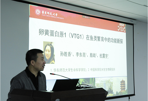 论坛期间,av影片 动物学科水生动物营养与环境健康实验室的杜震宇教授作了题为《卵黄蛋白原在鱼类繁育中的功能新探》的大会报告。他详细介绍了卵黄蛋白原相关基因敲除后会影响斑马鱼雌鱼体内磷脂从肝脏向卵巢的转运,从而影响卵巢发育以及幼鱼体质。