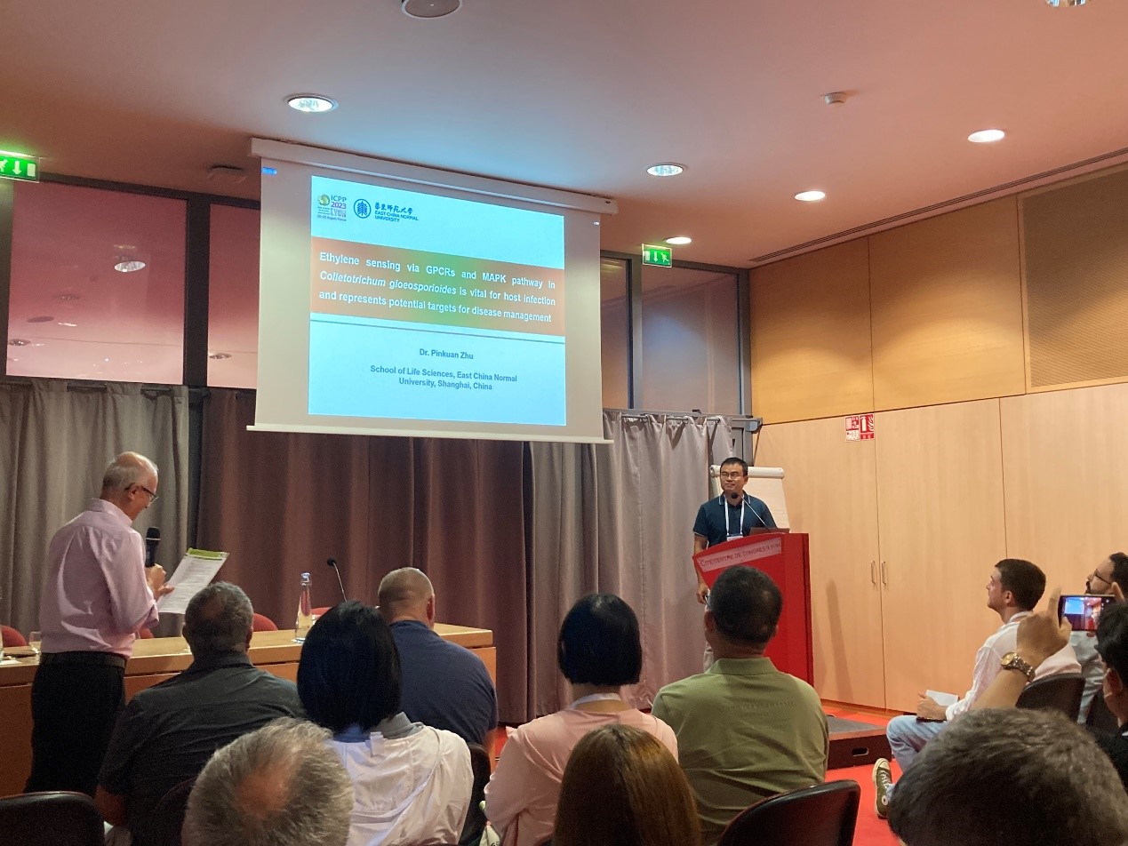 此次大会共有63个分会场、累计373位报告人。朱品宽副教授受邀在采收后病原菌与宿主及其微生物组互作的会场做了题为Ethylene sensing via GPCRs and Mapk pathway in Colletotrichum gloeosporioides is vital for host infection and represents potential targets for disease management的大会专题报告,该报告得到了国际知名植物病理学家荷兰瓦赫宁根大学Jan van Kan教授等多国学者的关注,会后朱品宽老师与各国学者展开了热烈的讨论。朱品宽副教授主要从事植物病原真菌的致病和毒力因子功能鉴定、果实采后病害响应环境因子的机理、以及果实病害防控和采后保鲜技术等方向的研究,此次大会报告的内容,主要揭示了病原真菌通过G蛋白偶联受体GPCRs和MAPK信号途径感应乙烯,对病原真菌的侵染力至关重要,可作为防控作物真菌病害的靶标。此次大会报告凸显了av影片 在本领域的研究成果,受到国内外学者好评。