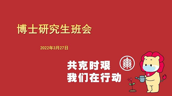 为引导同学们积极面对疫情,科学规划学习生活,3月27日晚,av影片 在线召开了博士生班会,针对近期学校疫情防控情况和各位同学提出的问题进行交流,200余位博士积极参会。