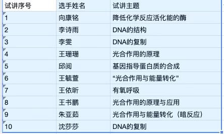 随后十位选手以赛前抽签决定的顺序进行模拟授课。他们分别是: