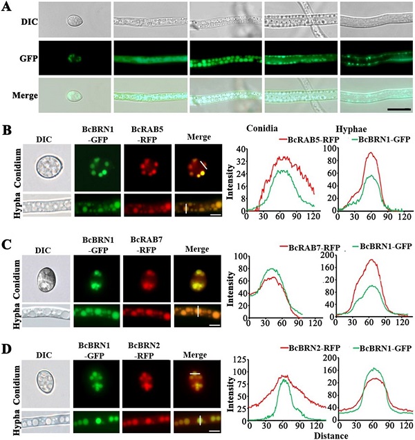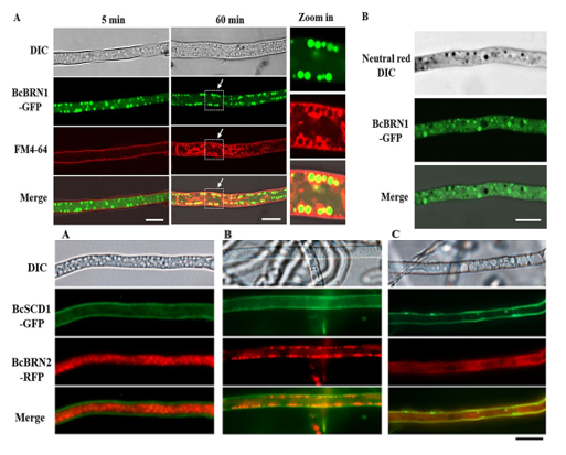 图2 负责合成scytalone的BcBRN1/2酶定位在内含体中,并进一步转运到细胞表面
