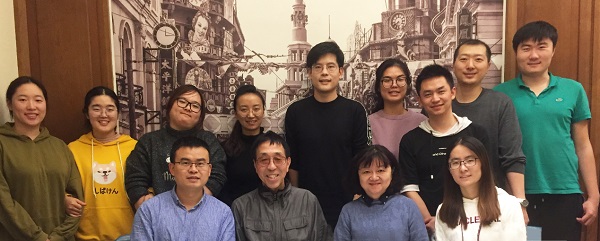 许玲团队成员 前排右数:陈雪博士生(第一作者)、许玲教授、豊田秀吉教授(日)、朱品宽副教授,后排右数4位朱传玺硕士生(并列第一作者)