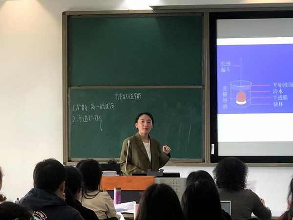 陈施慧同学是本次比赛最后一位试讲的选手,她的试讲内容同样是“被动运输”。她借助更加直观且利于观察的渗透作用的实验装置,充分讲解了渗透作用的条件和原理。接着阐述了细胞膜与半透膜之间的异同,并对物质进出细胞的所有方式进行了概述与总结,为学生建立完整的概念系统。随后对自由扩散的具体内容与特点进行讲解。