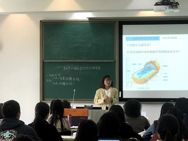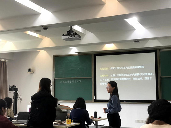 以一则萤火虫的谜语为导入,严巧芸同学带来了后半场比赛的第一场试讲。在回顾了已学习的能量物质后,她抛出“谁才是萤火虫发光的直接能源物质”的疑问。通过引导学生设计实验并进行验证而得出正确结论,随后将这一结论推广,总结ATP是生命活动的直接能源物质。严巧芸利用支票和纸钞的形象比喻,体现“ATP是细胞的能量货币”这一教学主题。唐立婷同学以刑侦破案中常见的DNA检测技术为导入,开始了“核酸是遗传信息的携带者”一节的试讲。在知识回顾与材料阅读中锻炼了学生的知识迁移及阅读提炼的能力。唐立婷还结合时事,介绍了病毒这一特殊的生命形式以及核酸在其中的分布。以提问的方式,由简入繁,解析了核酸的具体结构,顺利结束试讲。武雪同学同样以“光合作用的原理与应用”为主题,基于光合作用反应通式,抛出光合作用终产物氧气的氧元素来源问题,在学生提出各自的假设后,以科学史为线索,从简陋到严谨,从现象到原理,逐步探究氧元素的来源问题,最后通过问题引导梳理出光反应过程。