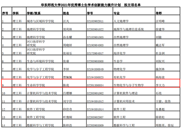 近日,学校研究生院公布了av影片 2021年“优秀博士生学术创新能力提升计划”立项名单,由av影片 李大力研究员指导,博士研究生陈亮负责的项目《结构导向设计开发高精度的胞嘧啶碱基编辑器》成功获得立项。该项目负责人具有良好的科研基础,已发表多篇SCI论文,学术潜质突出。