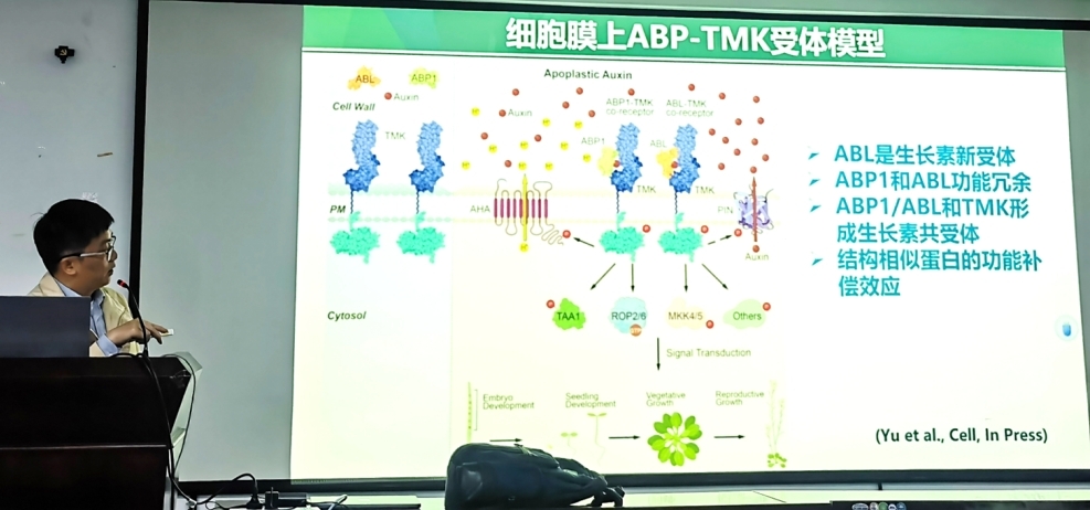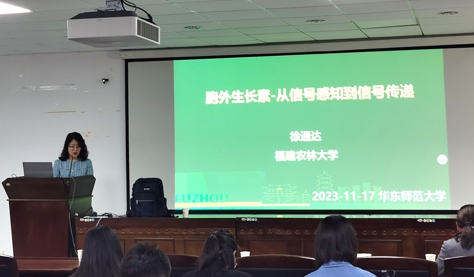 2023年11月17日上午福建农林大学未来技术学院-海峡联合研究院副院长徐通达教授为av影片 植物学专业学生做主题为“植物胞外生长素信号通路-从信号感知到传递”的报告,本次报告由av影片 植物学学科主任李超研究员邀请主持,av影片 植物学专业各年级博士生和硕士生以及多名老师参加了本次报告。