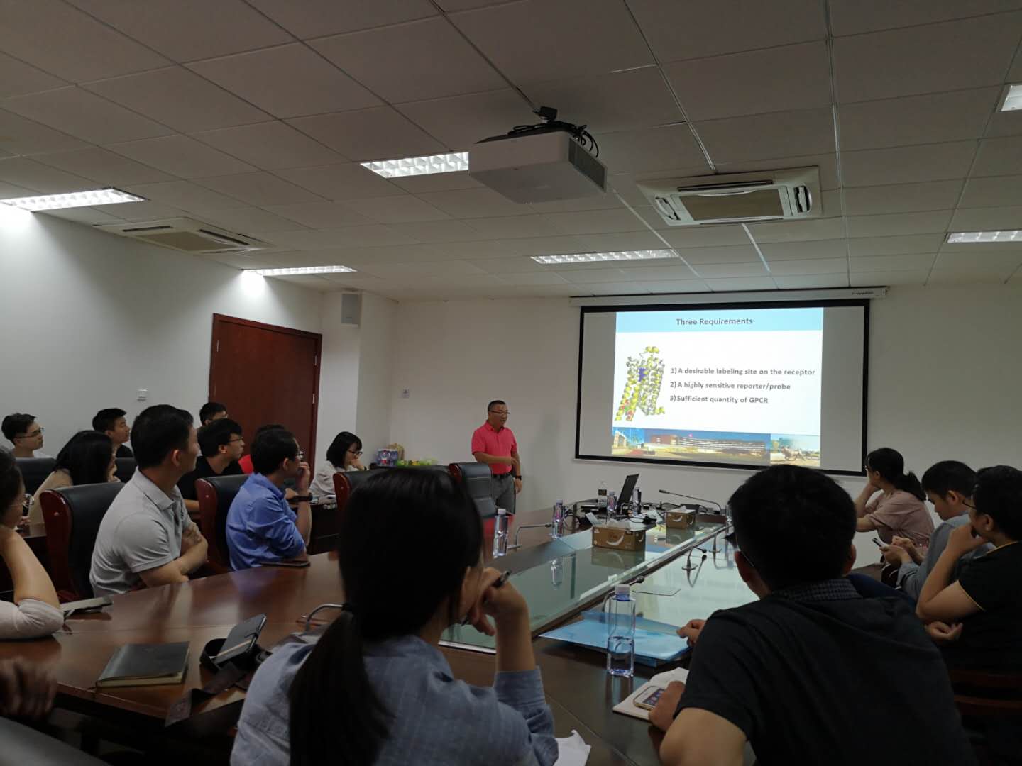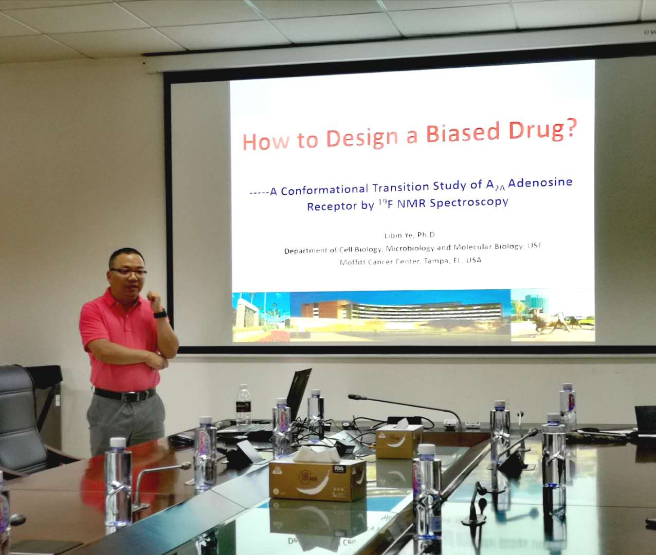 2019年5月31日,美国南佛罗里达大学叶立斌博士应邀在av影片 534小会议室进行学术交流,开展了题为“How to design a biased drug?”的学术报告,报告由张美玲教授主持。