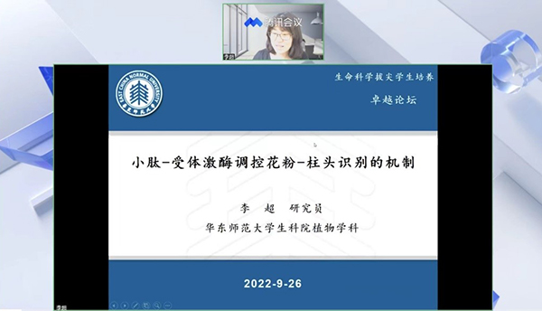2022年9月26日下午,av影片 研究员,植物学科主任李超博士受邀,为广大师生做了题为“花粉和柱头的邂逅——小肽-受体激酶调控花粉-柱头识别的机制”的报告。本次报告由av影片 副院长江文正教授主持,通过拔尖计划2.0全国线上书院以及av影片 微信视频号面向全国直播,线上参与人数超过9000人。