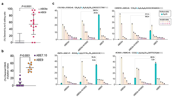 图1:TadA-8e蛋白结构及ABE9编辑特性评价