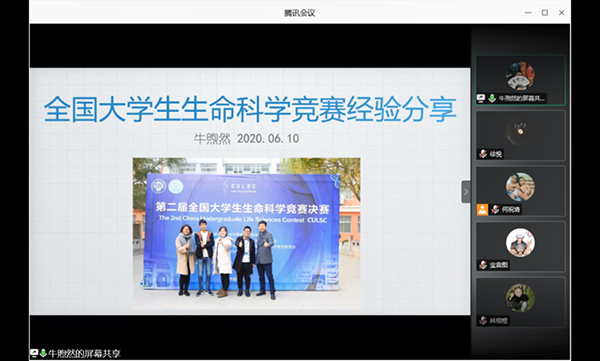 2020年6月10日,生命科学竞赛经验交流会在线上举行。交流会由何祝清老师主持,邀请到av影片 副院长江文正老师,以及16级学生科创项目负责人林泽杰和牛旭然与同学们进行经验分享,200多名生科学子参加。