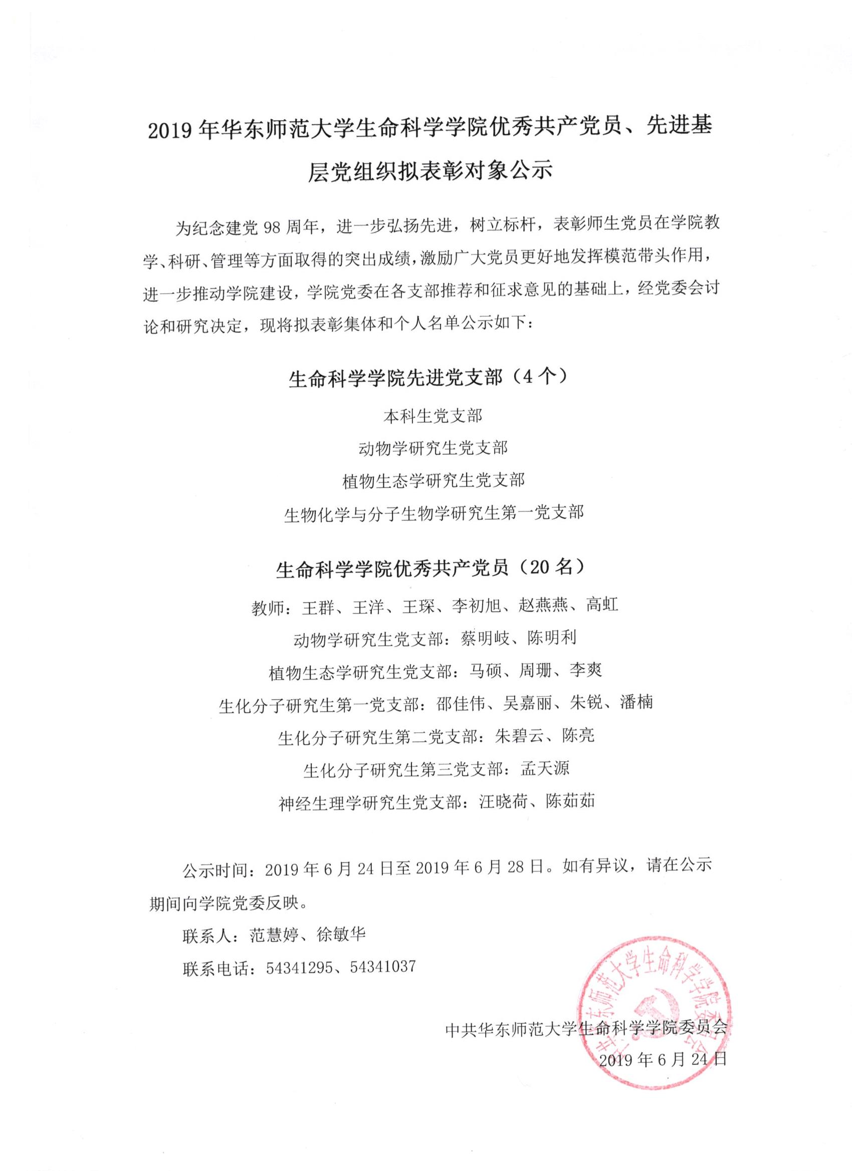 2019年av影片 优秀共产党员、先进基层党组织拟表彰对象公示