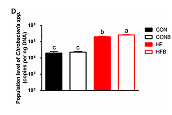 2.高脂饮食有助于柠檬酸杆菌属细菌在鱼肠道内的增殖;
