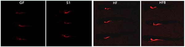 图7 无菌斑马鱼接种S1以及罗非鱼肠道微生物以后,腹腔脂肪染色结果