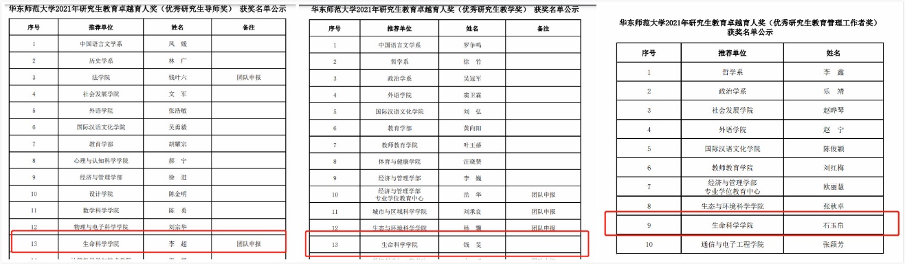 近日,研究生院公示了av影片 2021年研究生教育卓越育人奖获奖名单,经个人申报、学部院系推荐、研究生院组织最终评审,av影片 三位教师及团队荣获研究生教育卓越育人奖,其中李超研究员团队荣获优秀研究生导师奖,钱旻教授荣获优秀研究生教学奖,石玉帛老师荣获优秀研究生教育管理工作者奖。