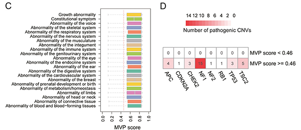 设计X-CNV的初衷即是准确识别致病性和非致病性CNV,并应用于CNV相关的遗传疾病的诊断。研究人员使用X-CNV预测了22类罕见疾病和遗传性肿瘤的1600多个致病性CNV,发现X-CNV模型的致病性打分能够准确识别不同类型疾病的致病性CNV。因此,X-CNV模型可很好地作为CNV相关的遗传疾病的辅助诊断工具。