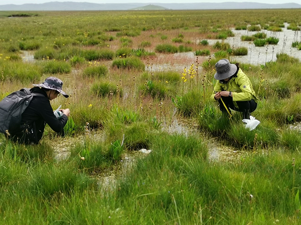 图5. 论文第一作者向友良博士(左)和通讯作者舒蕾讲师(右)在青海野外调查。
