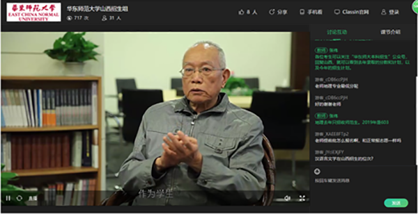 2020年7月11日下午2点30分,相约CLASSIN,我校在空中开展了校园“开放日“。av影片 江文正副院长携张美玲教授、张伟老师、陈珉老师、余蔚明老师进行了专业介绍和招生宣传的直播及与考生的在线交流和互动。
