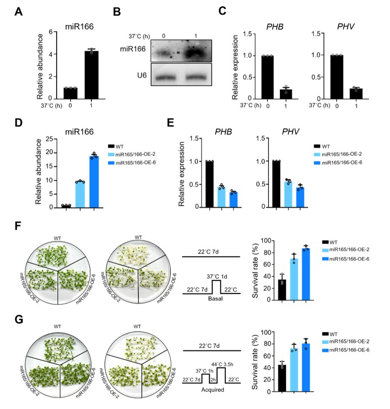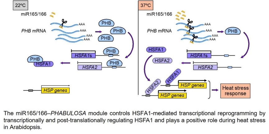 研究成果以“The miR165/166–PHABULOSA module promotes thermotolerance by transcriptionally and post-translationally regulating HSFA1”为题于2023年5月3日在国际著名学术期刊The Plant Cell在线发表。
