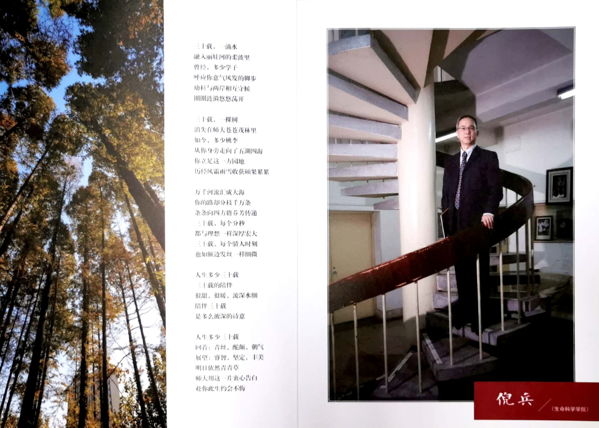 走过的是岁月,留下的是故事,随风的是记忆,带来的是希望。倪兵老师坚守教育岗位三十年,不忘教书育人的初心,牢记为国家培养高素质人才和推动国家科研进步的使命,三十载风雨无惧,三十载赤心不改。他是青年教师们的榜样,也是每一位青年学子的榜样。
