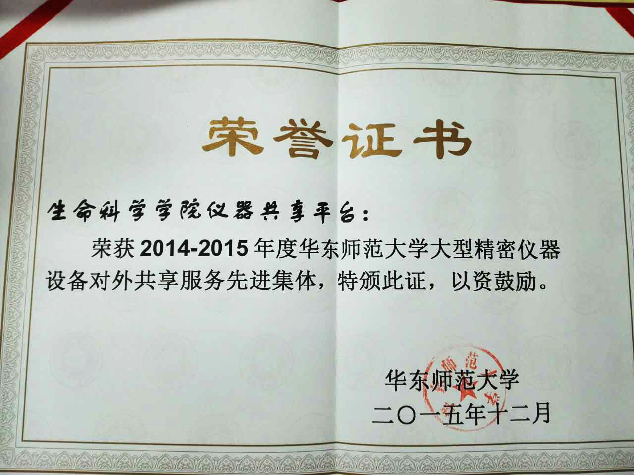 av影片 仪器共享平台荣获2014-2015年度av影片 大型精密仪器设备对外共享服务先进集体