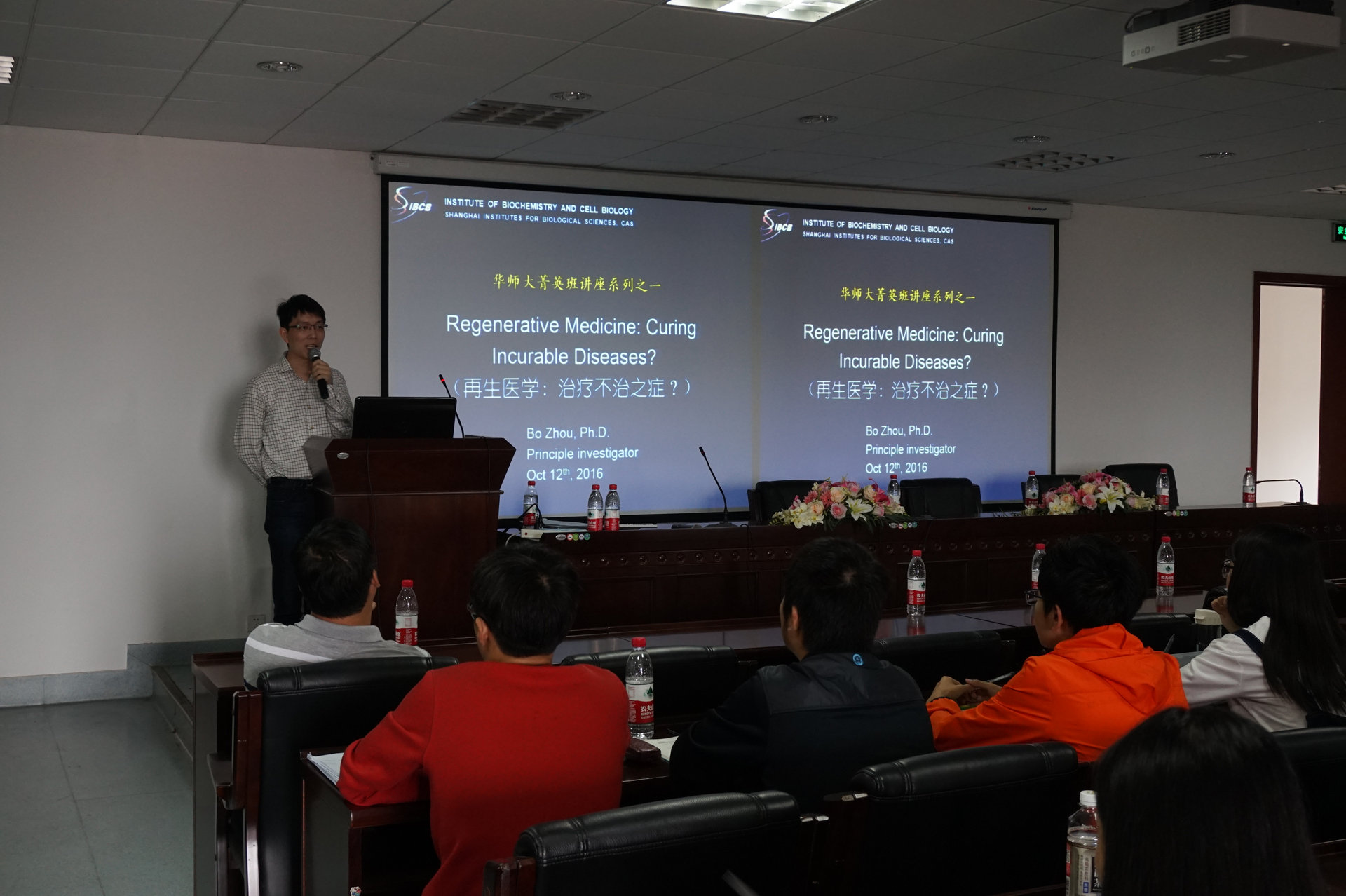 2015级、2016级本科菁英班本学期“第一次师生座谈会”在生科楼534会议室顺利召开。此次座谈会非常荣幸地邀请到中国科学院上海生命科学研究院生物化学与细胞生物学研究所周波教授为学生们做学术讲座。校教务处谭红岩老师,av影片