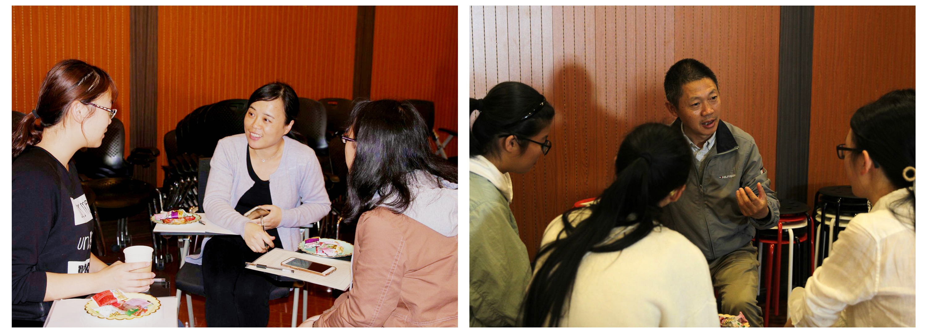 接下来是热火朝天的菁英班导师与结对学生自由交流的环节。老师们纷纷关心学生们的学习生活情况,有同学反映大二的专业课多且难,课余时间很难平衡,导师们根据个人情况给出学生安排课余时间的具体建议。导师与学生们的亲切交流继续着,不知不觉已经过去了二十分钟,导师与同学们都意犹未尽。