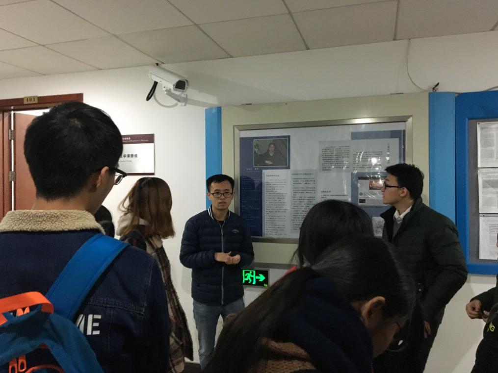 【调控生物学重点实验室的老师和博士生为菁英班学生讲解实验室情况】
