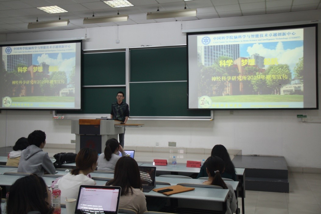 接下来,神经科学研究所研究生部周涛涛老师从体细胞克隆猴取得世界性突破入手,向大家展示了近年来神经科学研究所取得的重大成果:成功建立自我意识研究的猕猴模型、自闭症的猕猴模型等。神经科学研究所致力于神经科学基础研究的各个领域,包括分子、细胞及发育神经科学、系统与认知神经科学、神经系统疾脑认知及智能技术。老师指出神经科学研究所可提供给研究生一个有助于严谨科研工作,高效科研产出,良性科研合作的环境,并配备高质量的专业训练。