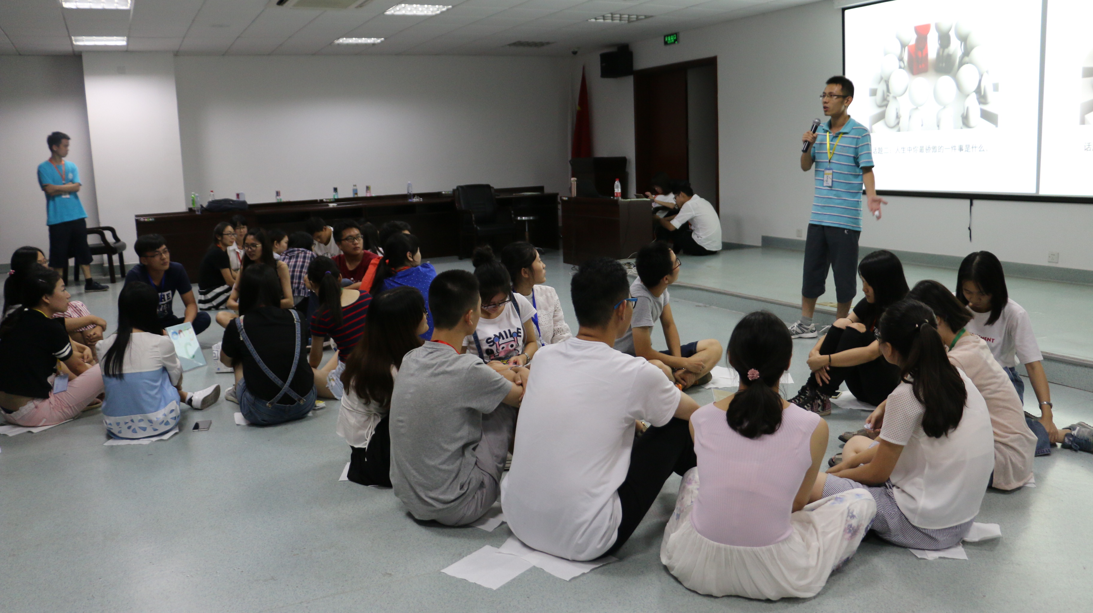 晚上,四位研究生与一位导师给营员们分享了自己的故事,“人生标本”的启发意义显得更加深刻。杜震宇老师结合自己的求学经历,讲述了跌宕起伏的高考志愿填报经历,“牛经大学”的来源让营员捧腹大笑。各位志愿者也结合自己的生活经历,分享了“我眼中的闵大荒”,“因为梦,所以想”的主题故事。