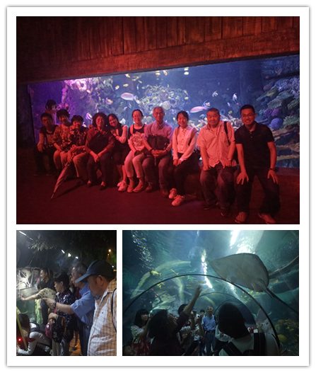 紧接着大家便一起进入银锄湖底的海洋世界参观,一行人满怀愉悦,时而驻足观赏,时而踱步交谈,氛围十分融洽。恰好学生们这学期在学习行为生态学,大家饶有兴致的观察各种海洋动物,老教授们时而抛出有关学科方面的知识,让我们以好奇和兴趣为指引,将课堂学习的知识与真实的感官体验相结合,对海洋动物的行为习性有了更进一步的了解,也激发了大家对探索海底世界更深层的兴趣。