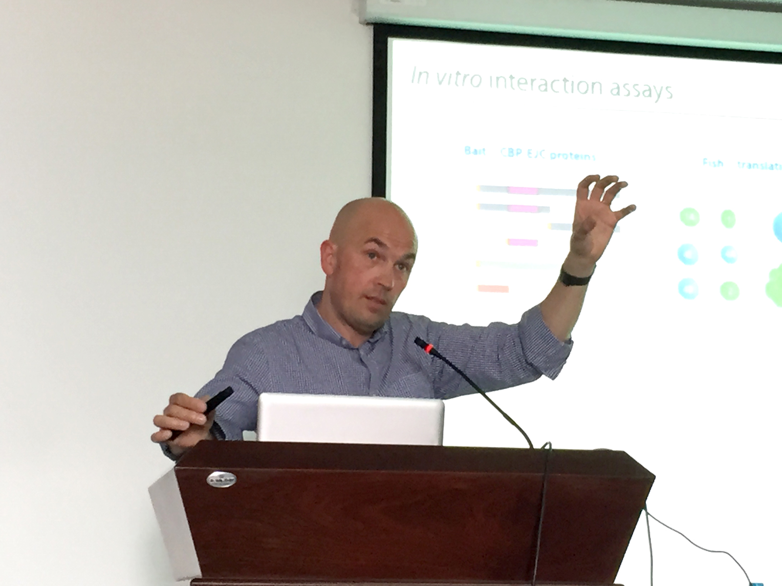 讲座中Hervé教授介绍了外显子连接复合物领域的最新进展,并展示了“磁镊子操控单一RNA分子”这一新型技术在生物学研究中的应用。