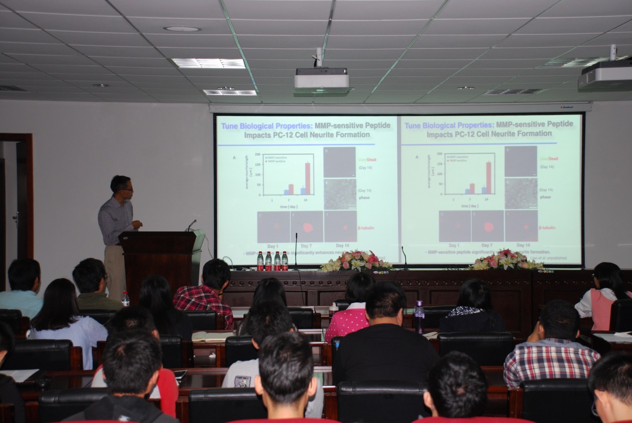 的师生们带来了一场题为“Design of Functional Biomaterials for Tissue Engineering and RNA Delivery”的学术报告。