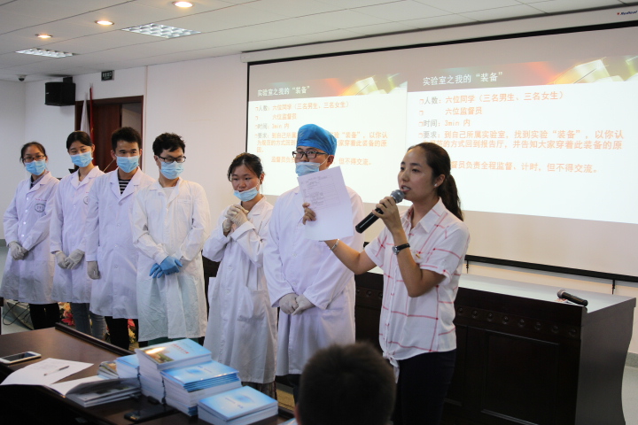 青年教师赵娟用案例教学法组织了一场有关实验室安全的小游戏,并现场让学生进行角色模拟,使新生更加直观地认识到实验室安全的重要性,激发了学生对实验安全学习的浓厚兴趣。