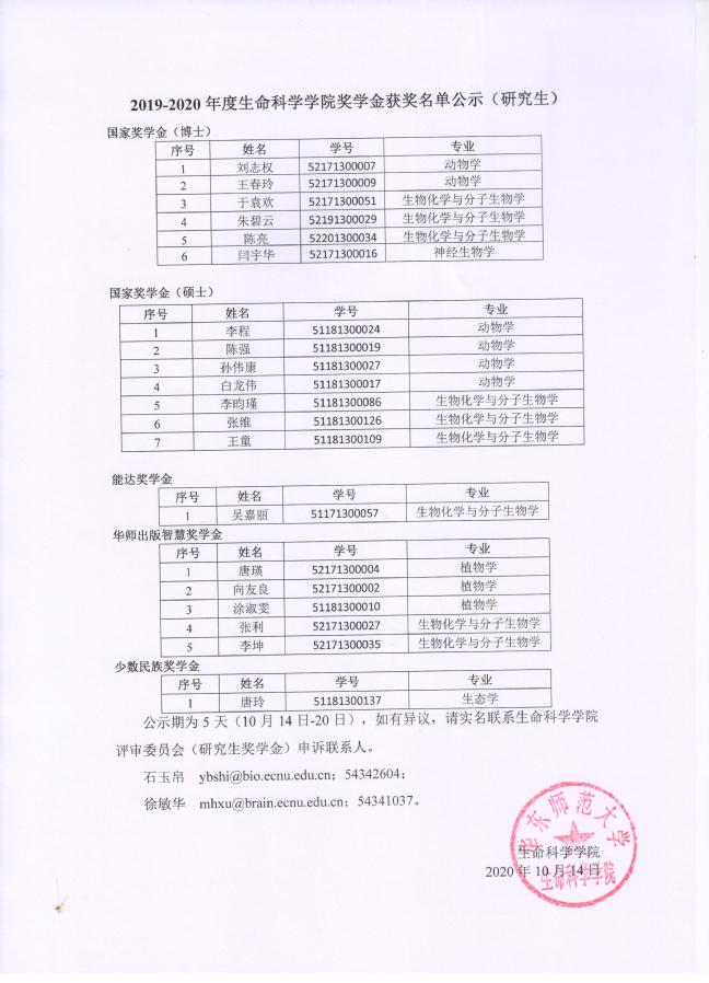 2019-2020年度av影片 奖学金获奖名单公示(研究生)