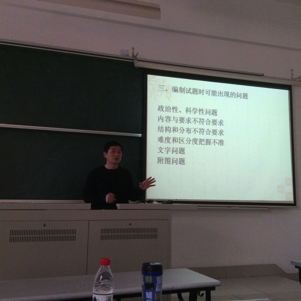 活动的第二个模块是兼职导师的主题讲座。本次王石老师为同学们做了关于“试卷编制的体会”专题讲座。王老师以多年参与高考命题的亲身体会为我们讲解了试卷编制的原则和一般步骤,并在讲解中为我们举例分析。虽然本次讲座的主题对同学们来讲比较遥远和陌生,但课后同学们纷纷表示这是一次意义重大的讲座,为我们的后继发展奠定了专业基础。继讲座之后,同学们关于教师资格证面试的问题向王老师进行提问互动,王老师对同学们提出的问题一一耐心地解答,并勉励同学们努力学习专业知识,从容应对教师之格证面试。