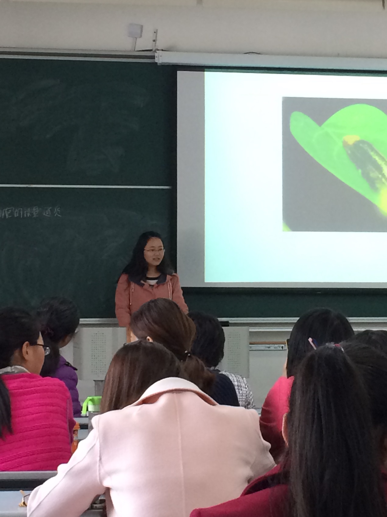 活动的第二个部分是兼职导师的主题讲座。朱玮雪老师为同学们做了“理想的生物课堂”专题讲座。本次讲座的切入点独特,在讲座中朱老师以多样的活动形式充分调动学生的积极性和参与性,将中学课堂的课堂模式和课堂气氛真实地展现在我们面前,让我们感受到了真实的名师风采。继讲座之后,同学们关于如何把握生物课堂等实际问题向朱老师进行提问互动,朱老师老师对同学们提出的问题一一耐心地解答,并祝愿同学们在以后的生物教学中实现自己理想的生物课堂。