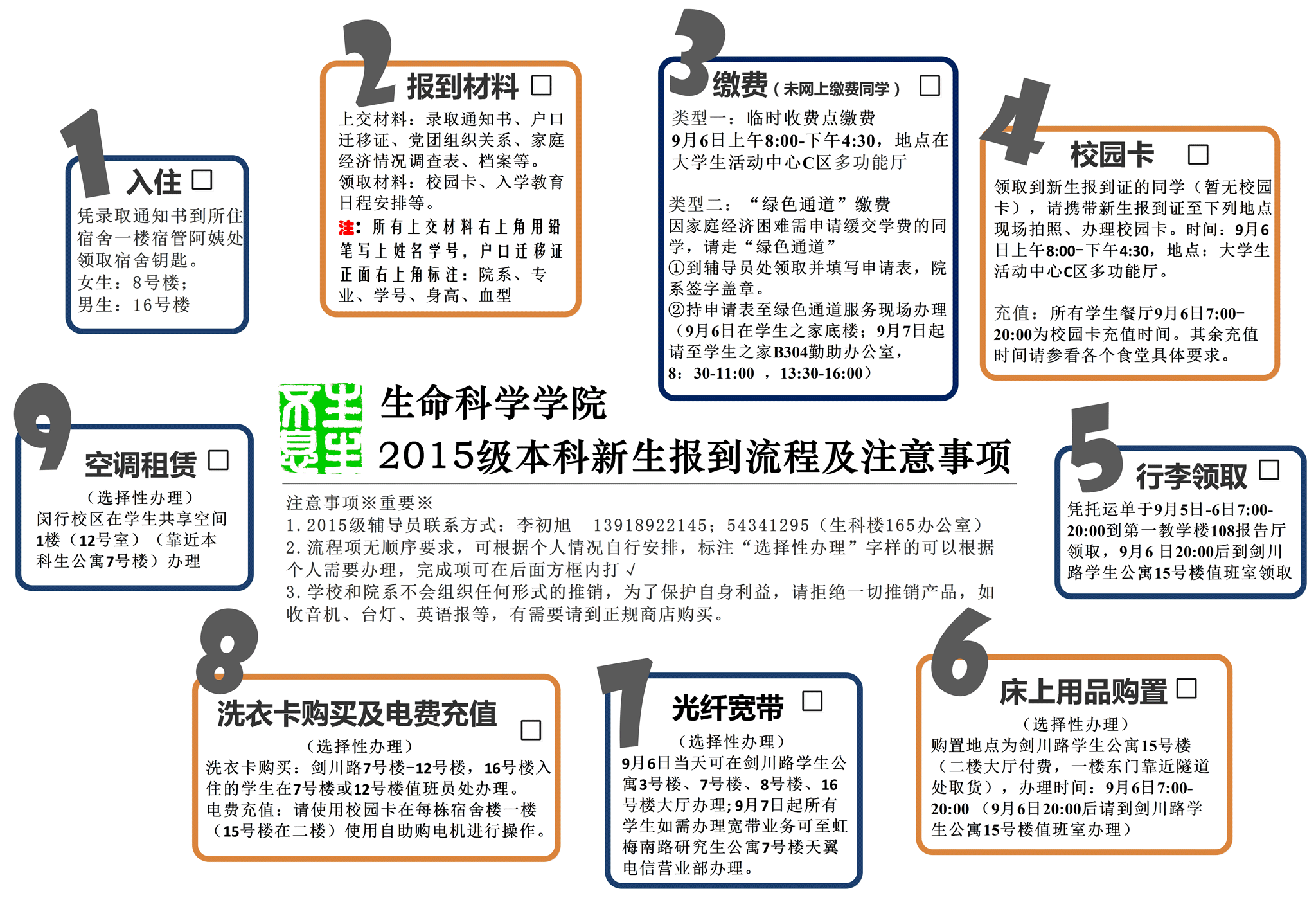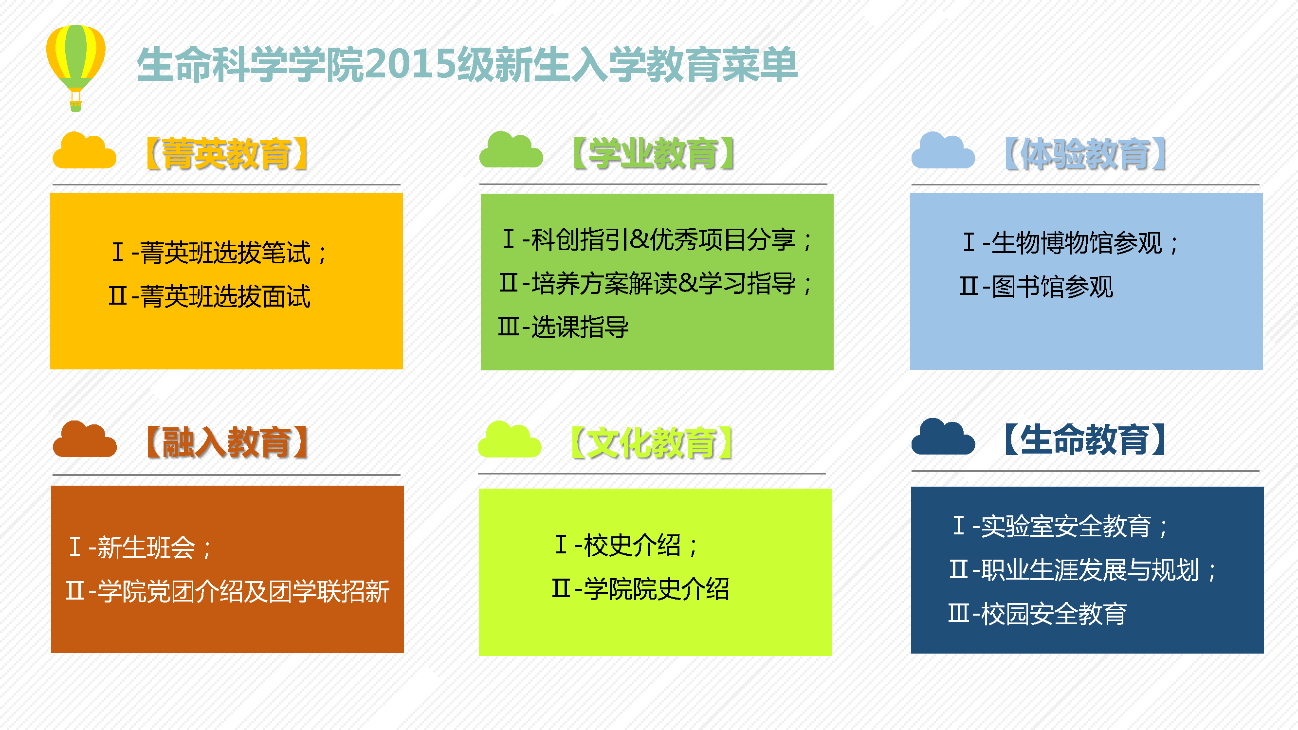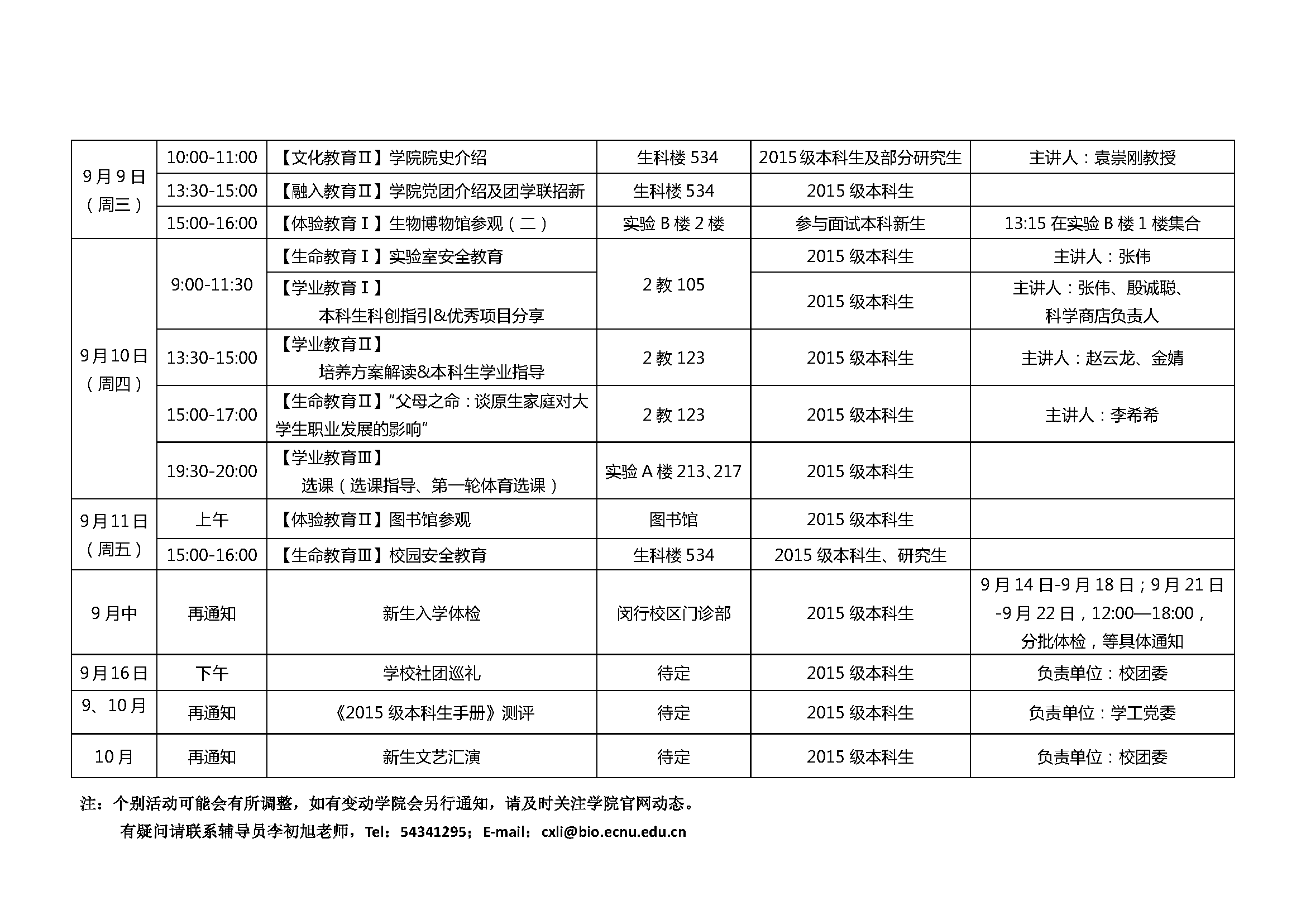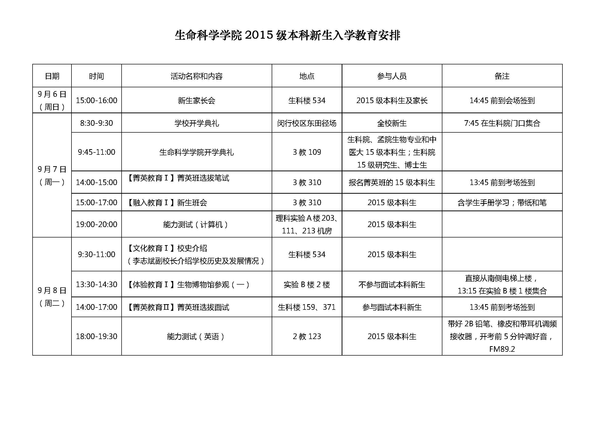 生科院2015级本科新生入学教育安排