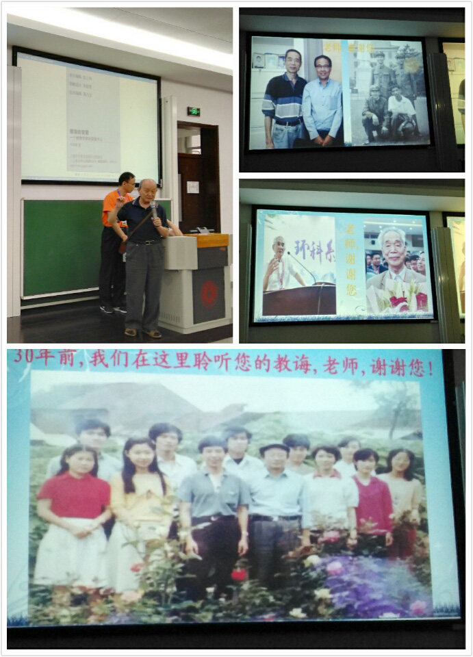 接着,校友们请上了恩师代表马炜梁教授发言,八十余岁的马老依然身体健硕,声如洪钟。马老师开心地向校友们介绍了近几年自己在科学研究方面的成果,用切身行动向同学们展示了终身学习的精神,同时马老也祝同学们身体健康、家庭幸福。同学们纷纷表示今天能请到马炜梁教授、翁恩琪教授及胡天喜教授出席他们的聚会感到非常地荣幸,忆起当年老师们课堂上兢兢业业地身影不禁感慨岁月如梭,教诲如春风,师恩深似海!