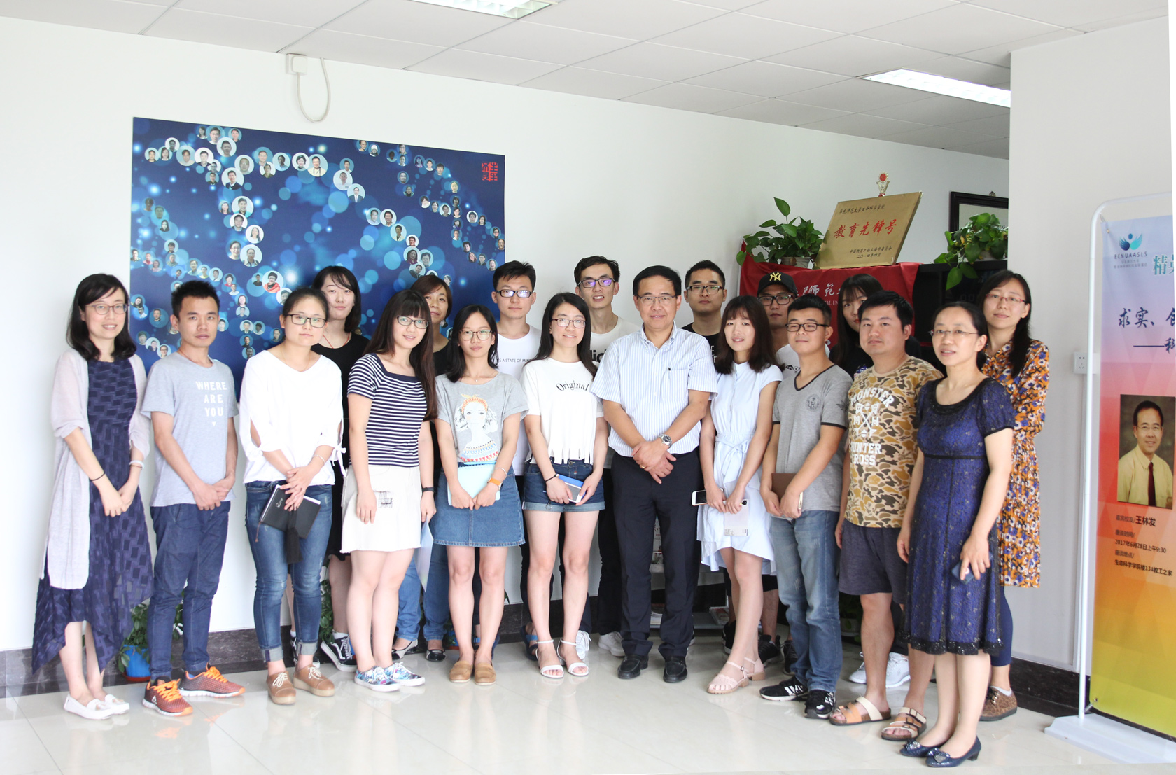 生物学系、为何选择出国留学、如何成为院士等话题,王院士妙趣横生的回答引来在座师生的热烈掌声和阵阵笑声。对于从小就好奇收音机里毛主席的声音是如何传出来,喜欢钻研机械构造的王林发校友却因为“被抽签”进入华东师大学习生物,以至于虽之后被公派出国读博,并在期间发了五篇高质量论文,却仍未把生物作为最大兴趣所在,“不管什么时候都要极尽所能,竭尽全力,求真务实”的理念使得他从未放弃,并最终在澳大利亚最大的安全实验室开始了使他兴趣盎然的新生感染性疾病领域的研究,以全新的视角去审视蝙蝠这一古老的哺乳动物,提出了蝙蝠与病毒的“和平共处”与其长寿相关的具有深远意义的一系列假设及后来揭示其中的一部分的生物分子机制,在SARS溯源、追溯Hendra和 Nipah病毒与动物及人类的关系、蝙蝠分子免疫学等领域引领了全球科学研究方向。