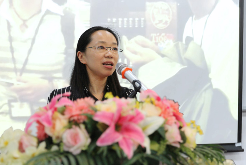10:50,av影片 党委副书记兼副院长徐敏华老师也来到了现场,为09届校友所主办的这次活动致辞,她同时隆重介绍了av影片 简要的发展和校友工作,并且,为到场的同学们带来了学院校友联谊会精心准备的多件礼物:校徽、冰箱贴。其中,冰箱贴中的校友联谊会LOGO是前辈校友精心设计的,生生不息的院徽也是源自av影片 退休教师与校友的设计思路,设计大气、美观,既具有纪念意义,又蕴含了av影片 校友源远流长、凝聚一心的精神。徐老师用一句话概括了校友会的精髓:生命在于运动,感情在于走动。