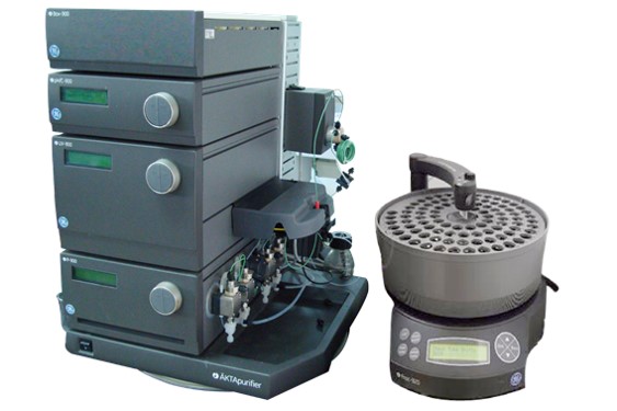 技术参数: ◆ 流速:0.001 - 10 mL/min,压力 0 - 25 MPa(3650 psi) ◆ UV 检测:190 - 700 nm 同时 3 波长,pH 检测 2 - 12 ◆ 电导检测:1 μS/cm - 999.9 mS/cm ◆ 阀门:8 通道缓冲液切换阀,8 通道大组分切换阀 ◆ 用生物工程下游技术从混合物之当中分离纯化出所需要得目的蛋白质 ◆ 适用各种层析技术,专门分离和纯化各类生物分子,包括天然蛋白质,重组和融合蛋白质、肽、寡核酸、质粒、病毒、抗生素、生物碱等等,操作肽图等精确分析和小量制备应用 仪器主要功能及应用: 主要功能 仪器使用步骤及注意事项: 1. 开机和准备 a. 打开仪器的主电源,打开电脑电源。待仪器自检完毕(CU950上面的3个指示灯完全点亮并不闪烁)。双击桌面上UNICORN图标,进入操作界面。 b. 准备工作溶液和样品。所有的工作溶液和样品必须经过0.45 µm的滤膜过滤,样品也可高速离心后取上清备用。当缓冲液中含有有机溶剂(如乙腈、甲醇)时, 需在使用前用低频超声脱气10 min。 c. 清洗及管道准备。首先将A1管道放入缓冲液或平衡液,binding buffer中,将B1管道放入高盐溶液中或elution buffer,在system control窗口点击工具栏内 的manual,选择 pump→pump wash basic,选中A1、B1管道为ON, execute。泵清洗将自动结束。 d. 安装层析柱。在manual里选择pump→flow rate,流速1 mL/mL,insert;选择Alarm&mon→alarm pressure,设置high alarm(输入填料的耐受压力,可在填料 说明书中查到),insert,execute。待Injection Valve的1号位管道流出水后接入柱子的柱头,稍微拧紧后将柱下端的堵头卸掉接入管道连上紫外流动池。 2. 开始纯化 a. 柱子平衡好后,将紫外调零,选择Alarm&mon→autozero,exectue。 b. 上样 b1. 用样品环上:将样品吸进注射器,推掉气泡,从injectionValve的3号位推入(进样量不得低于样品环的体积的2倍)推好后不要取下注射器。在manual里选择 flowpath→injectionValve→inject,execute。 b2. 用泵上样:点击pause,将A1放入样品中,点击countine,待样品上完后,再将A1放入到平衡液中继续清洗柱子。 c. 洗脱:上样后用缓冲液尽量将穿透峰洗回基线。在manual里选择pump→gradient,按照自己的工艺选择target B(100%)和length(10 CV)。 d. 设定收集:选择Frac→fractionation_900,输入每管收集体积,exectue。结束固定体积收集选择Frac→ fractionation _stop_900,exectue。 e. 清洗泵及卸下层析柱。将A1和B1入口放入纯水中,启动pump wash purifier功能冲洗A泵和B泵及整个管路。然后再将A1和B1入口放入20%乙醇中,同样操作将乙 醇冲满整个管路保存。系统给柱子一个慢流速,设置系统保护压力,然后先拆柱子的下端,正在滴水的时候将堵头拧上,再拆柱子的上端,最后拧上上端的堵头。 整个过程防止气泡进入。 3. 实验结束 从软件控制系统的unicorn manager点击退出,其他窗口不能单独关闭。关闭AKTA主机电源,关闭电脑电源。 4. 注意事项 a. 所有缓冲液和样品必须抽滤并且超声才可以上机。 b. 实验过程中时刻关注漏液情况,如漏液请检查各个端口是否拧紧。 c. 样品层析柱请正确使用。 d. 实验完毕请彻底清洗柱子和系统。 |